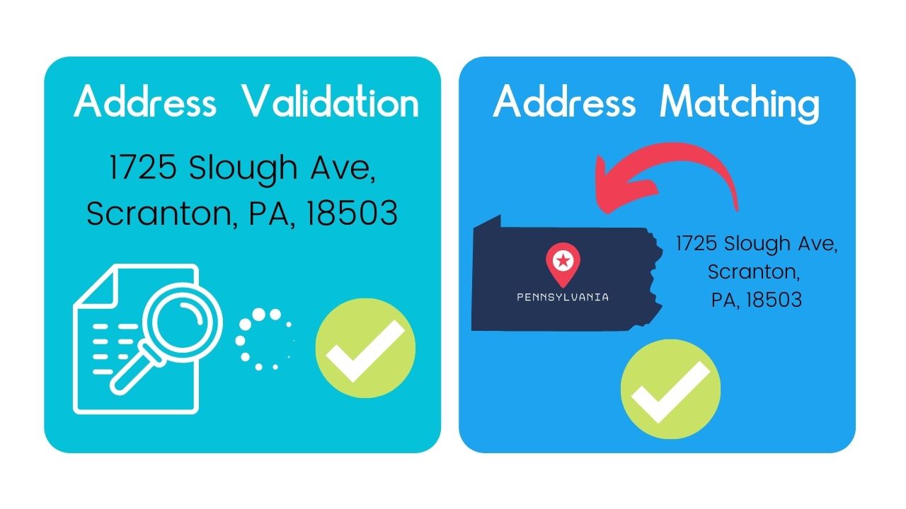 First, we’ll cover the difference between the two, and define each clearly. Then we’ll show you when to use each so you know how to leverage this information for significant impact, and finish by explaining why address validation isn’t the same as address matching.