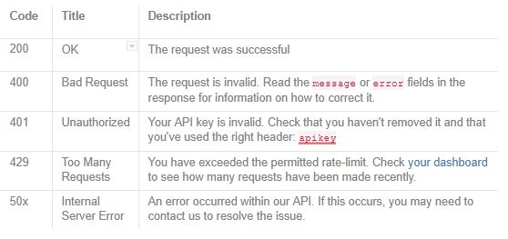 Placekey uses standard HTTP status codes to communicate success or failure: