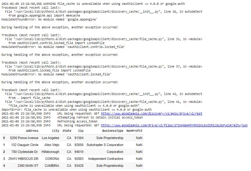 This section is authenticating your Google Drive and download/reading in the appropriate files from their respective Google Drive locations