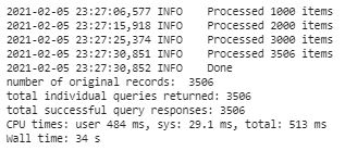 This file is 3.5k rows of data processed in batches of 1,000 rows at a time