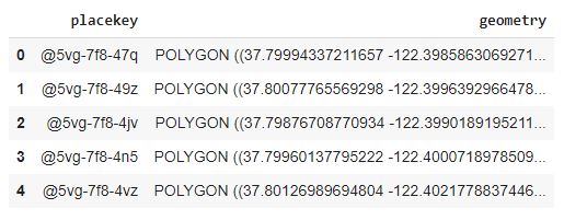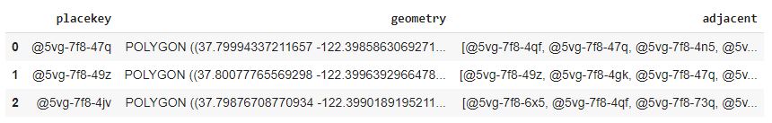 First, we add a column called geometry for the shape of each Placekey hexagon.